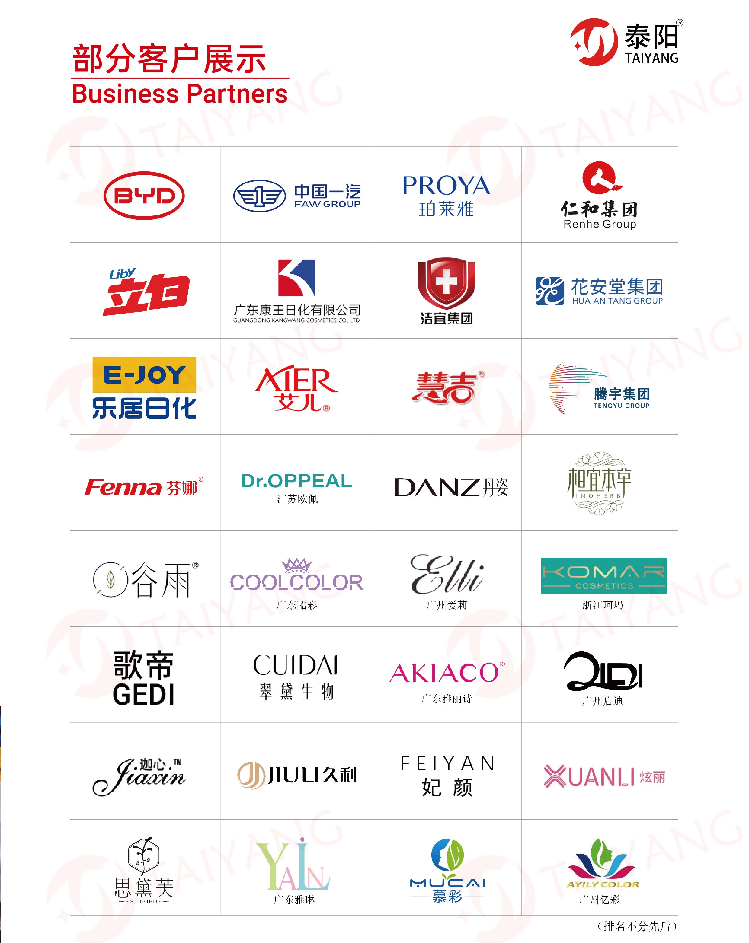 Μετά από περισσότερα από δέκα χρόνια σκληρής δουλειάς, η επιχειρηματική ζήτηση της Taiyang Machinery Equipment Co., Ltd. συνεχίζει να αυξάνεται. Προκειμένου να προσαρμοστεί καλύτερα σε αυτήν την τάση, η εταιρεία θα επεκτείνει την επιχειρηματική της πεδίο στους τομείς παραγωγής, πωλήσεων και υπηρεσιών στο εξωτερικό. Το κύριο κάλυμμα των προϊόντων της εταιρείαςμηχανές πλήρωσης, μηχανές κάλυψης, μηχανές επισήμανσης, μηχανές συσκευασίαςκαι άλλοι μηχανικοί εξοπλισμό και συναφή αξεσουάρ, τα οποία χρησιμοποιούνται ευρέως σε πολλές βιομηχανίες όπως τα τρόφιμα, τα ποτά, τα προϊόντα φροντίδας του δέρματος, τα καλλυντικά, τα καθημερινά χημικά κ.λπ., τηρούμε την έννοια του σχεδιασμού της υψηλής ακρίβειας και της υψηλής απόδοσης και παρέχουμε στους πελάτες σχολαστικές προσαρμοσμένες υπηρεσίες για να ανταποκριθούμε πλήρως στις διάφορες ανάγκες των πελατών για μηχανικό εξοπλισμό και κάθε σύνδεσμος ελέγχεται από τους επαγγελματίες. Η εταιρεία έχει πάντα δεσμευτεί να δημιουργήσει υψηλής ποιότητας, υψηλής ακρίβειας, εύχρηστης και εύχρηστης και εύχρηστης προϊόντων. Εστιάζουμε στην προσαρμοσμένη πλήρη γραμμή συσκευασίας, με προχωρημένη εμπειρία Ε & Α για τον αυτόματο εξοπλισμό και την ενσωμάτωση εξαιρετικών ευφυών παραγωγικών πόρων και εφαρμόζουμε τις μελλοντικές έξυπνες ιδέες εργοστασίων σε τα προϊόντα και τις υπηρεσίες μας. Υποστηρίζουμε την ελάχιστη ποσότητα παραγγελίας και παρέχουμε αξεσουάρ που απαιτούνται για τη συντήρηση του προϊόντος. Ελπίζουμε ειλικρινά να δημιουργήσουμε μια μακροπρόθεσμη και σταθερή συνεργατική σχέση με τους πελάτες μας, να συνεργαστούμε και να επιτύχουμε μια win-win συνεργασία!